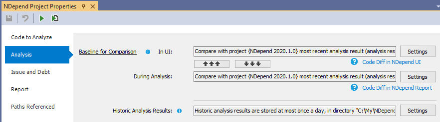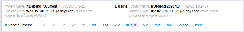 After a few days you might want to update the baseline because the first analysis result might miss some data (like code coverage data for example). The baseline can be defined from: CppDepend > CppDepend Project Properties > Analysis > Baseline for Comparison